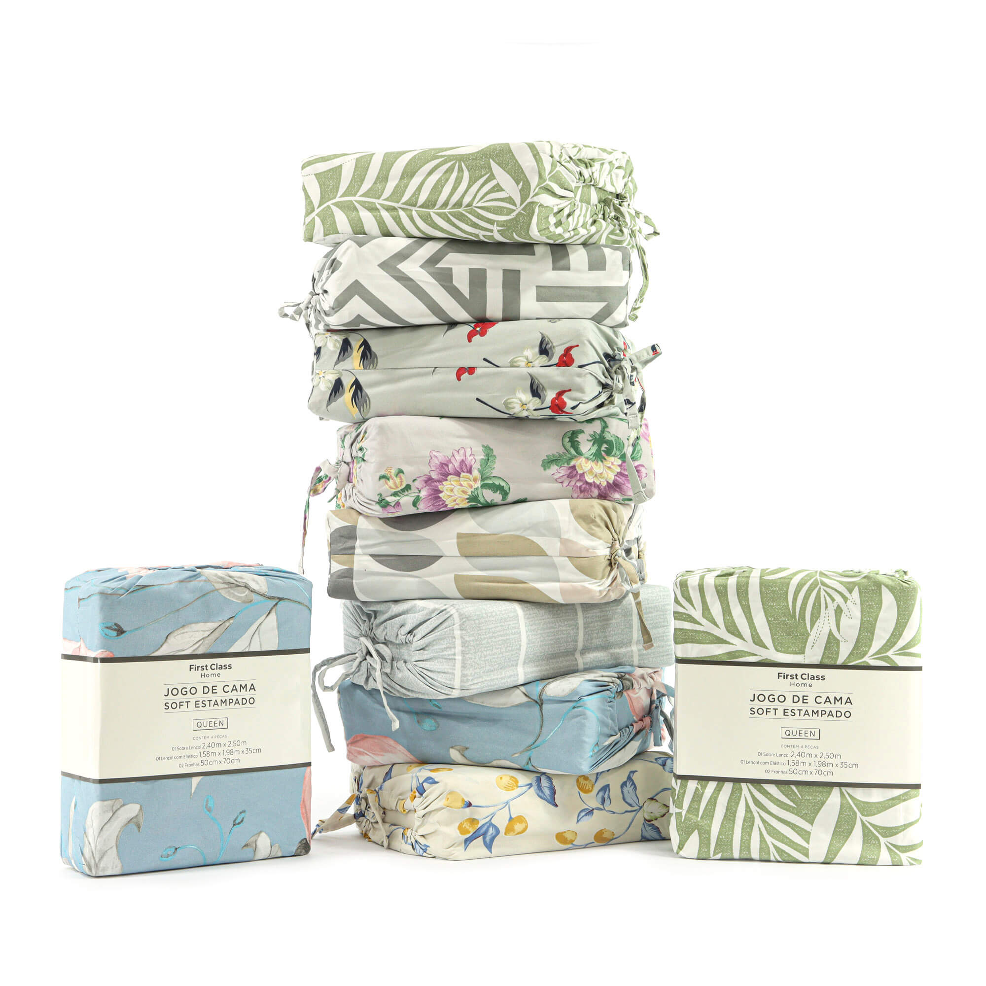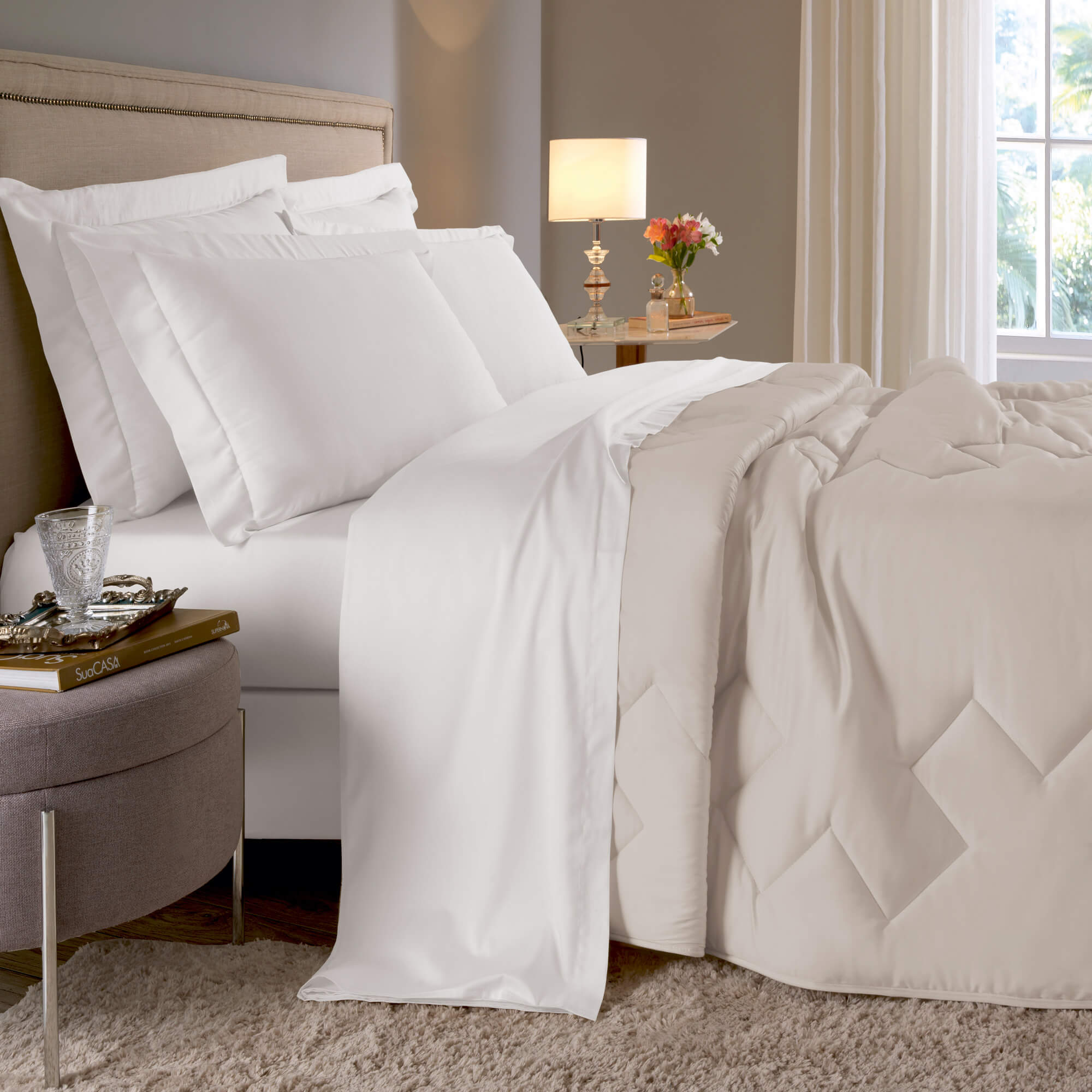 Jogos de cama em 1000, 400 e 180 fios no algodão, além de opções em microfibra e malha. Disponíveis do solteiro ao king, em diversas cores e estampas. Maciez, qualidade e conforto em cada detalhe.