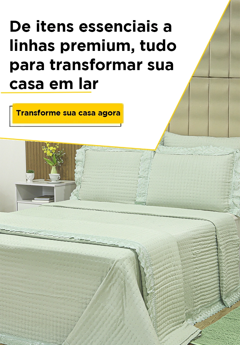 Somos uma loja democrática, pensada para atender todos os gostos e bolsos. Oferecemos desde produtos acessíveis e de qualidade até linhas premium, ideais para quem busca exclusividade. Fazemos parte de uma rede com mais de 250 lojas pelo Brasil, reconhecida como especialista em cama, mesa e banho.